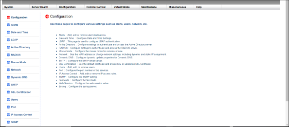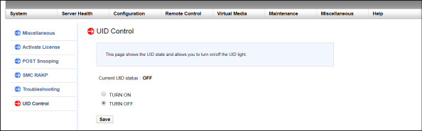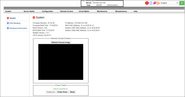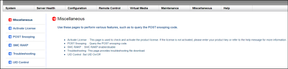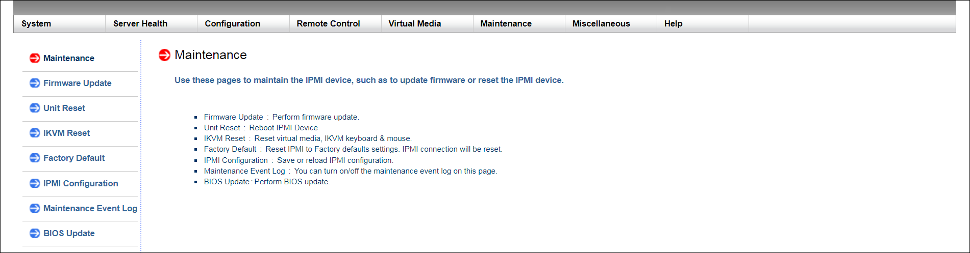 In the BMC Web UI, click Maintenance in the Main Menu at the top of the page to open the Maintenance page.