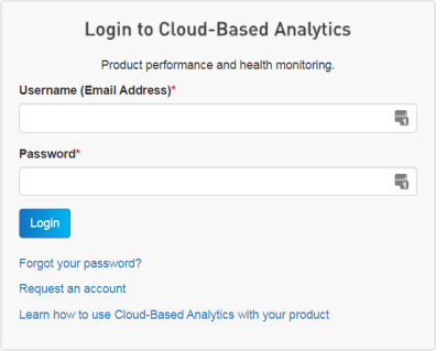 You must have an account to enable Cloud-Based Analytics (CBA). To request a CBA account, click the Request an account link in the Cloud-Based Analytics site at insight.quantum.com.