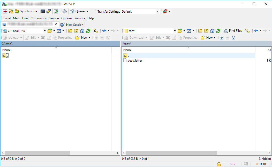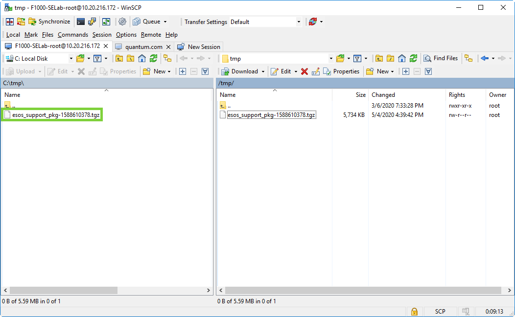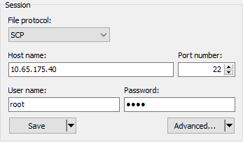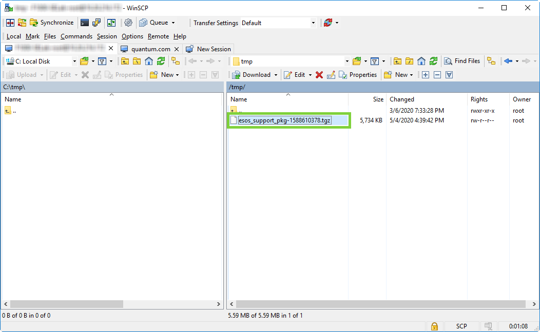 - Using WinSCP or a similar tool, retrieve the support bundle. To create a new WinSCP site, enter: