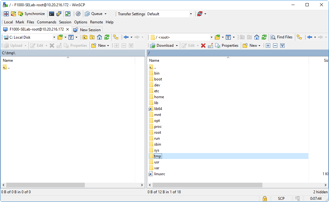 For WinSCP, click Login to see your local directory on the left, and an F1000 directory on the right:
