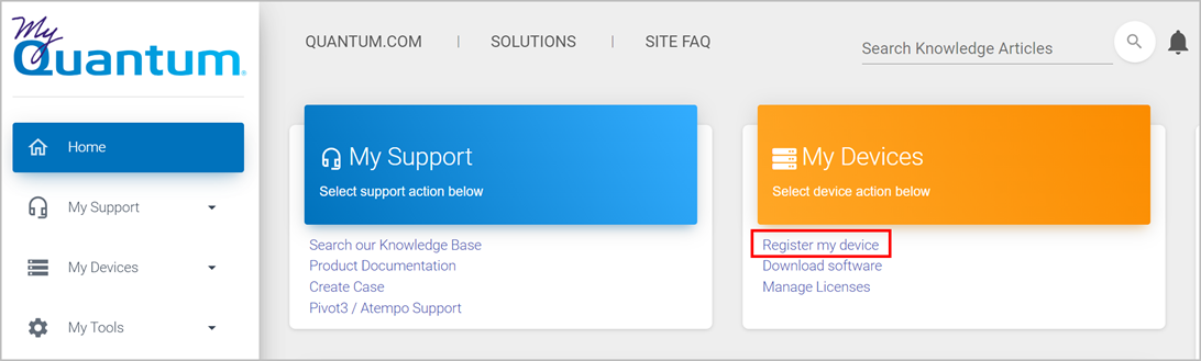 MyQuantum is a single portal for everything Quantum. You can view assets, open service cases, receive real-time updates, and search the Knowledge Base and documentation, all through a secure, online portal.