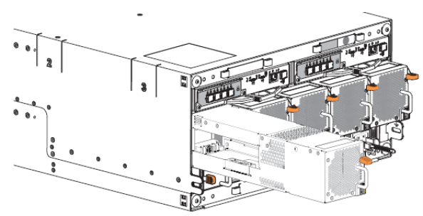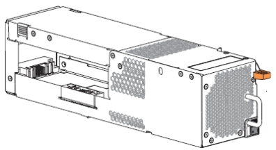 Facing the rear of the storage enclosure, orient the new PSU with the latch to the left.