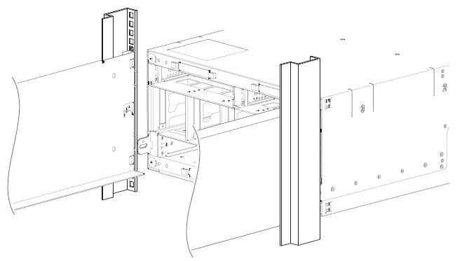 Placing the heels of both palms against the face of the drawer near the anti-tamper locks, exert even inward pressure until the drawer is almost flush with the rack ear flanges.