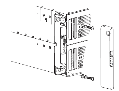 Facing the front of the enclosure, remove the Panhead 10-32 screw with washers into the top and bottom holes in the ops panel.