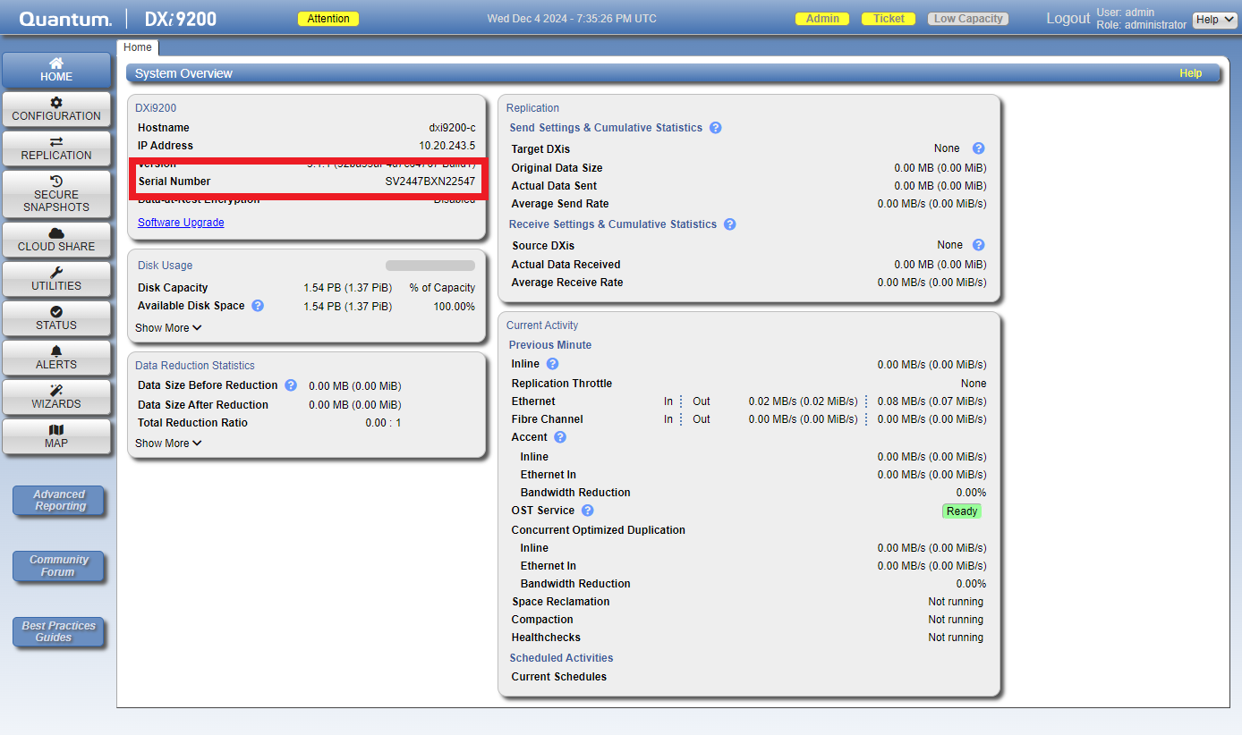 You need this number to contact Quantum Support or to add a licensed feature. |