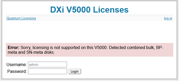 Note: Adding license keys through the DXi GUI using the License Keys page, RestAPI or CLI commands is disabled for the DXi. That page is now read-only and displays all currently installed licenses in your system. If you try to add a license key using the License Keys page, the system returns an error message stating that the operation is not allowed.