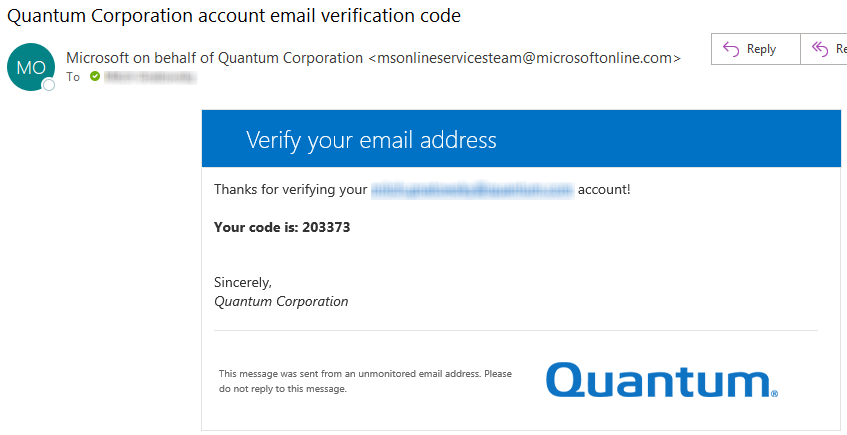 You will receive an email containing your verification code. Your registration screen changes to let you know the code has been sent and to enter it.