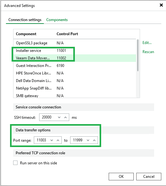 - Click Advanced. Make sure the Use per-VM backup files check box from the Storage Compatibility Settings dialog is selected, then click OK.