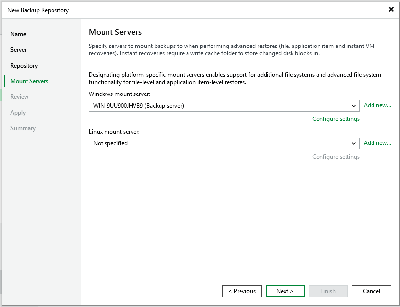 - Click Next in the Repository section of the New Backup Repository dialog.