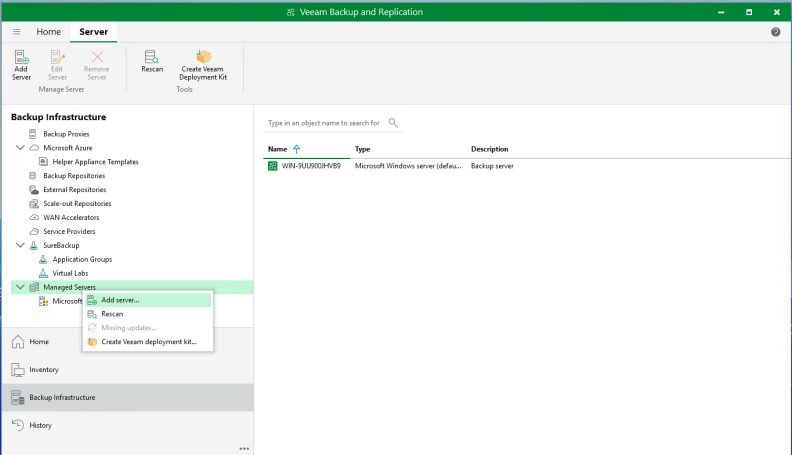 Complete the following steps in the Veeam Console on the Veeam Backup and Replication server: