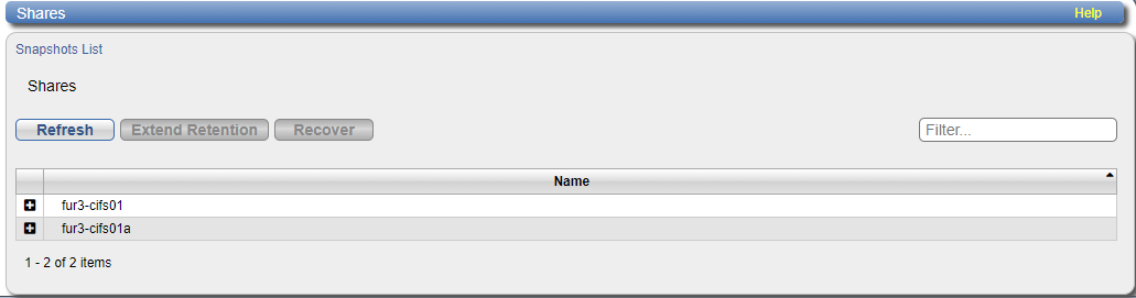 - In the Snapshots List, click the plus-sign icon next to the desired share to show the system's existing snapshots for that share.