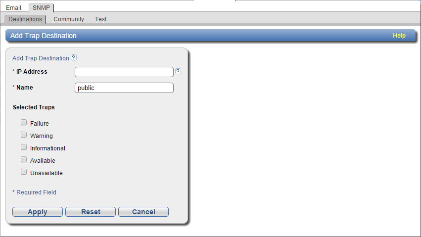 - Available – Sends a trap when the system transitions from an unavailable to an available state.