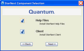 | 1. | If you just completed installing the client, the StorNext Installation window displays (Figure 3). The components you selected during the install are already added, but if you changed your mind and want to select different components, you can do so now. |