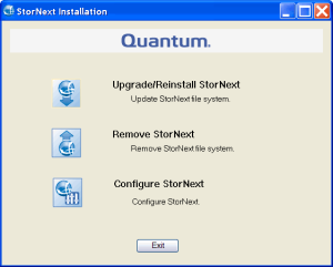| 1. | Open the StorNext Installation window by double-clicking the file named SnfsSetup32.exe (32-bit systems) or SnfsSetup64.exe (64-bit systems). |