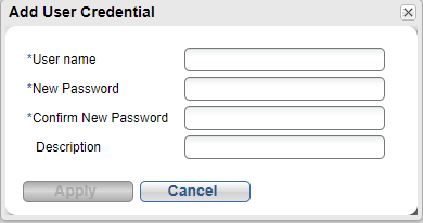 - Use the Add User Credential dialog to add new authenticated user information and click Apply.