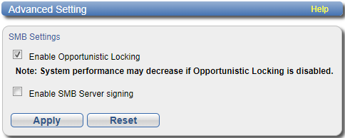 The Advanced Setting page allows you to enable or disable advanced SMB settings.