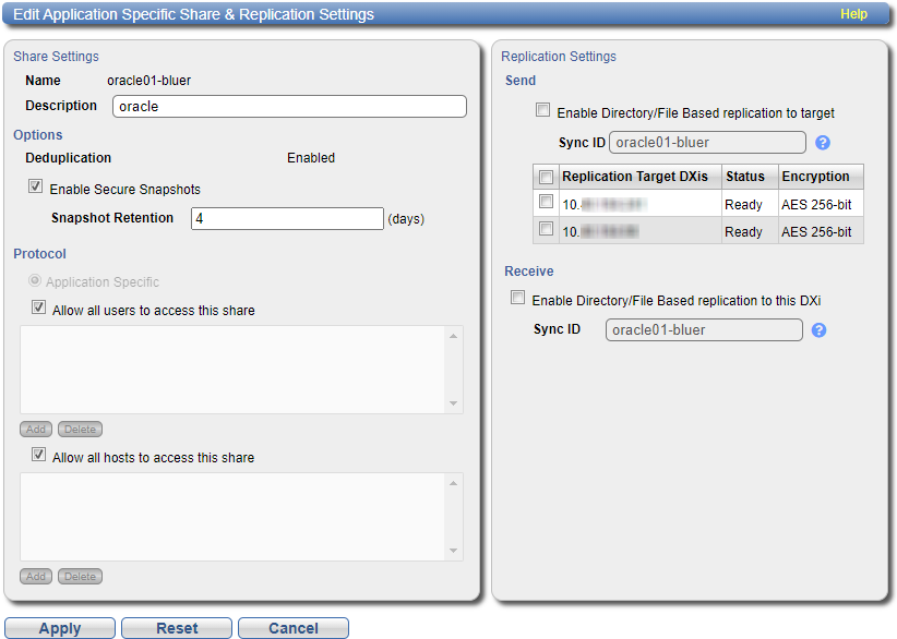 - Edit properties for an existing Application Specific share. See Editing an Application Specific Share.