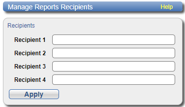 Enter the e-mail addresses of up to four recipients in the boxes, and then click Apply. When the system generates scheduled email reports, they will be sent to the specified addresses.
