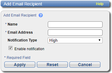 - Add an e-mail recipient. See Adding an Email Recipient.