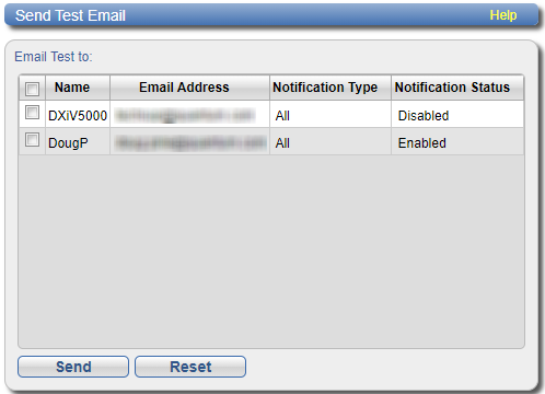 To send a test email, select a recipient in the list and click Send. If the recipient does not receive the email, make sure that the recipient's email address and the outgoing email server are correct. See Editing an Email Recipient and Server.