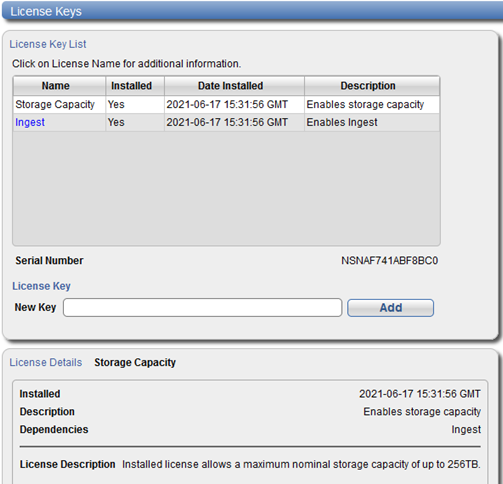 The License Keys page allows you to see the licenses that are installed on the system.