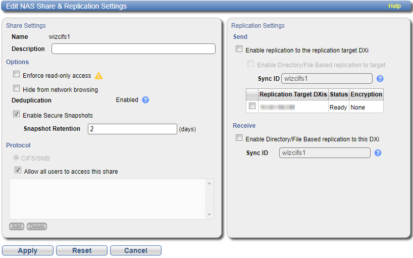 For more information about configuring replication for a share, or to set up replication for the share at a later time, see Replication.