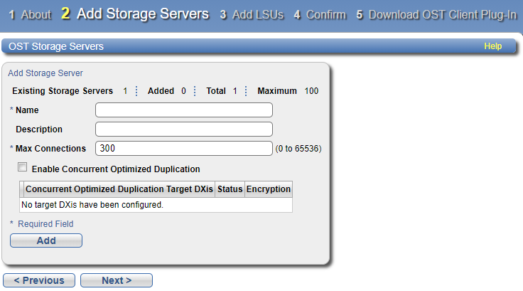 Description (Optional) Enter a brief description of the storage server. Max Connections Enter the maximum number of connections allowed to the storage server. To disable OST, enter 0 connections. To enable OST, enter 3 to 65536 connections