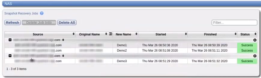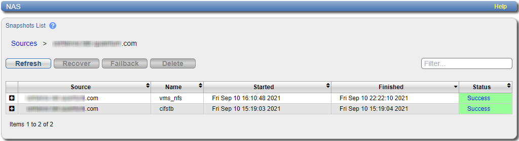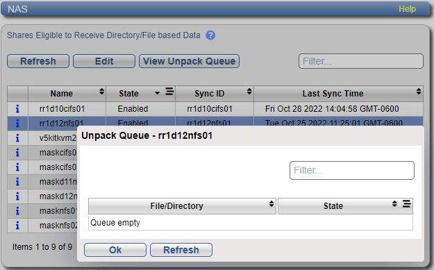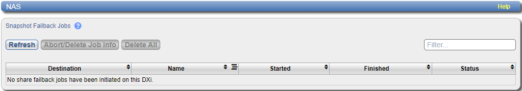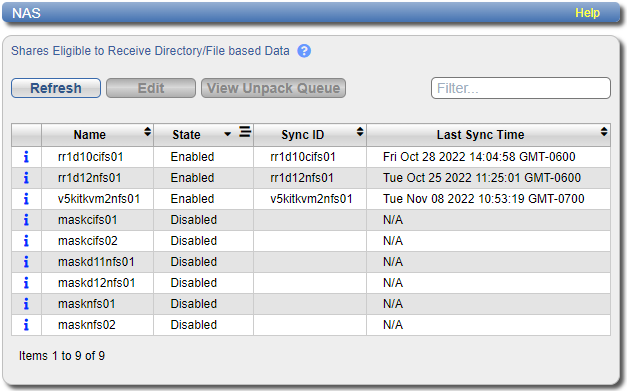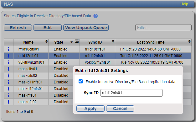 The Receive > NAS pages allow you to manage incoming namespace-type replication activity for NAS shares. You can recover a replicated share on the target system if the source system is unavailable. Once the source system becomes available, you can failback the share to make it available on the source system again.