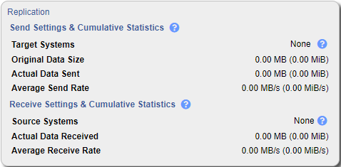 The Replication overview on the Home page displays the following information about target and source replication activity:
