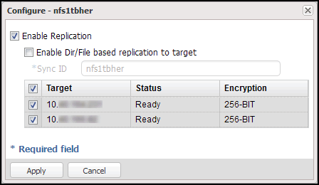 Note: Directory/File-based Replication will be configured for all selected targets. You cannot configure one share for multiple replication types.