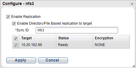 Note: After you configure a share for Directory/File-based Replication, you should synchronize it to ensure it is in sync with the target share. See Synchronizing a Share.