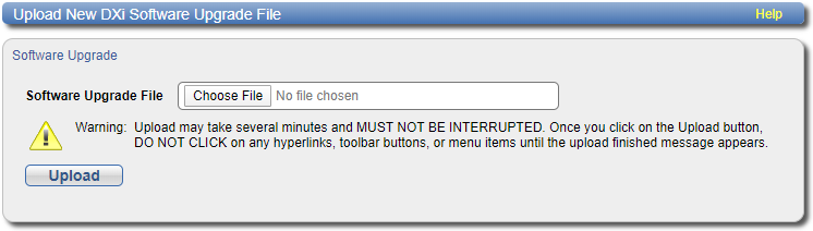 The Software Upgrade page allows you to upload and install a software upgrade file on the DXi.