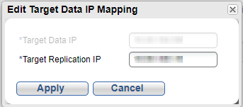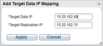 Target Data IP The target data IP address to map. Target Replication IP The replication IP address to map the data IP address to. - Click Apply.