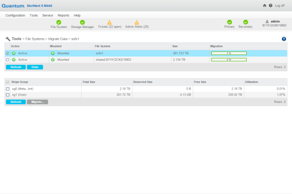 - Click a Metadata/Journal Stripe Group in the File System to migrate (refer to Figure 1).